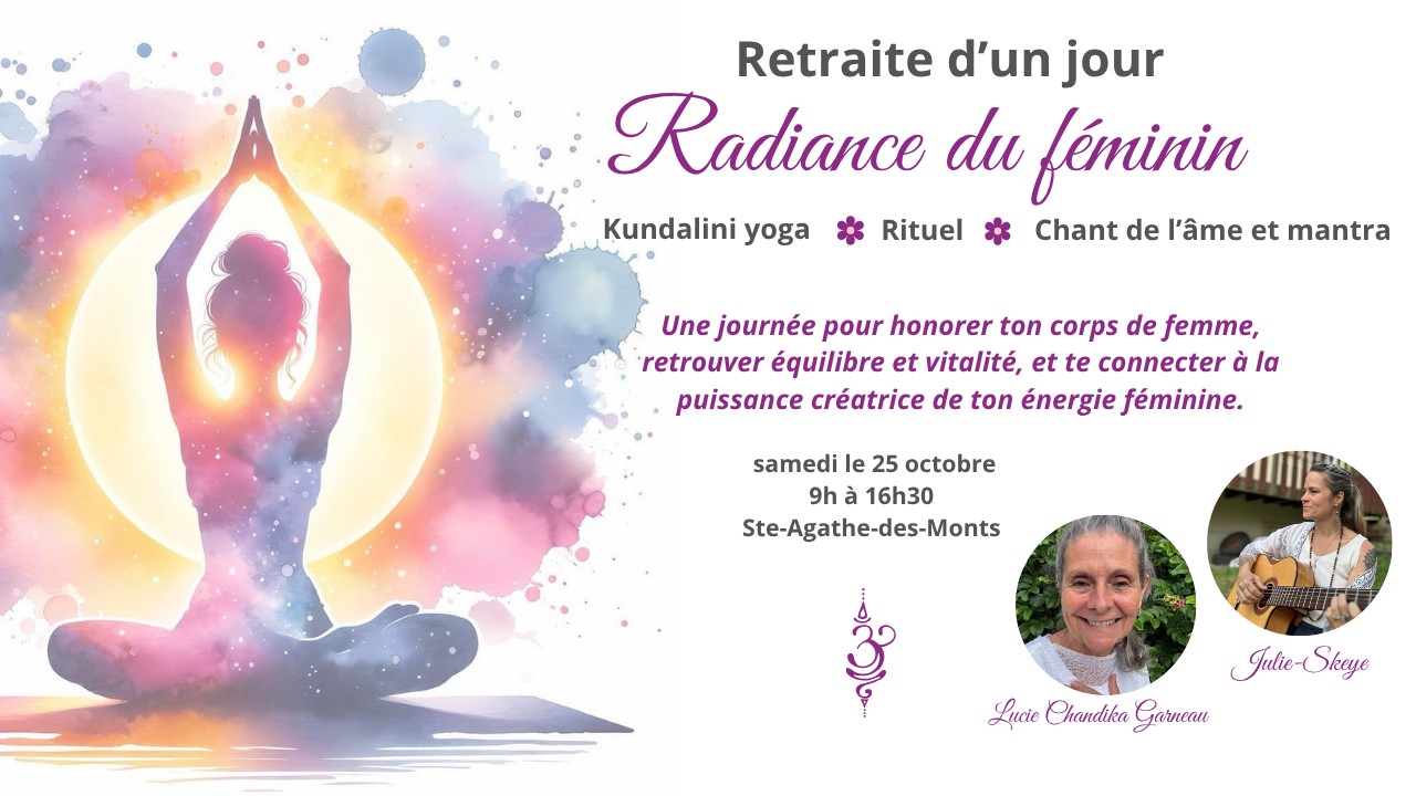 Durant cette journée, grâce au Kundalini Yoga, à la respiration, à la méditation et à la visualisation, tu auras l’occasion de ralentir, de déposer tes fardeaux, et de retrouver douceur et équilibre.